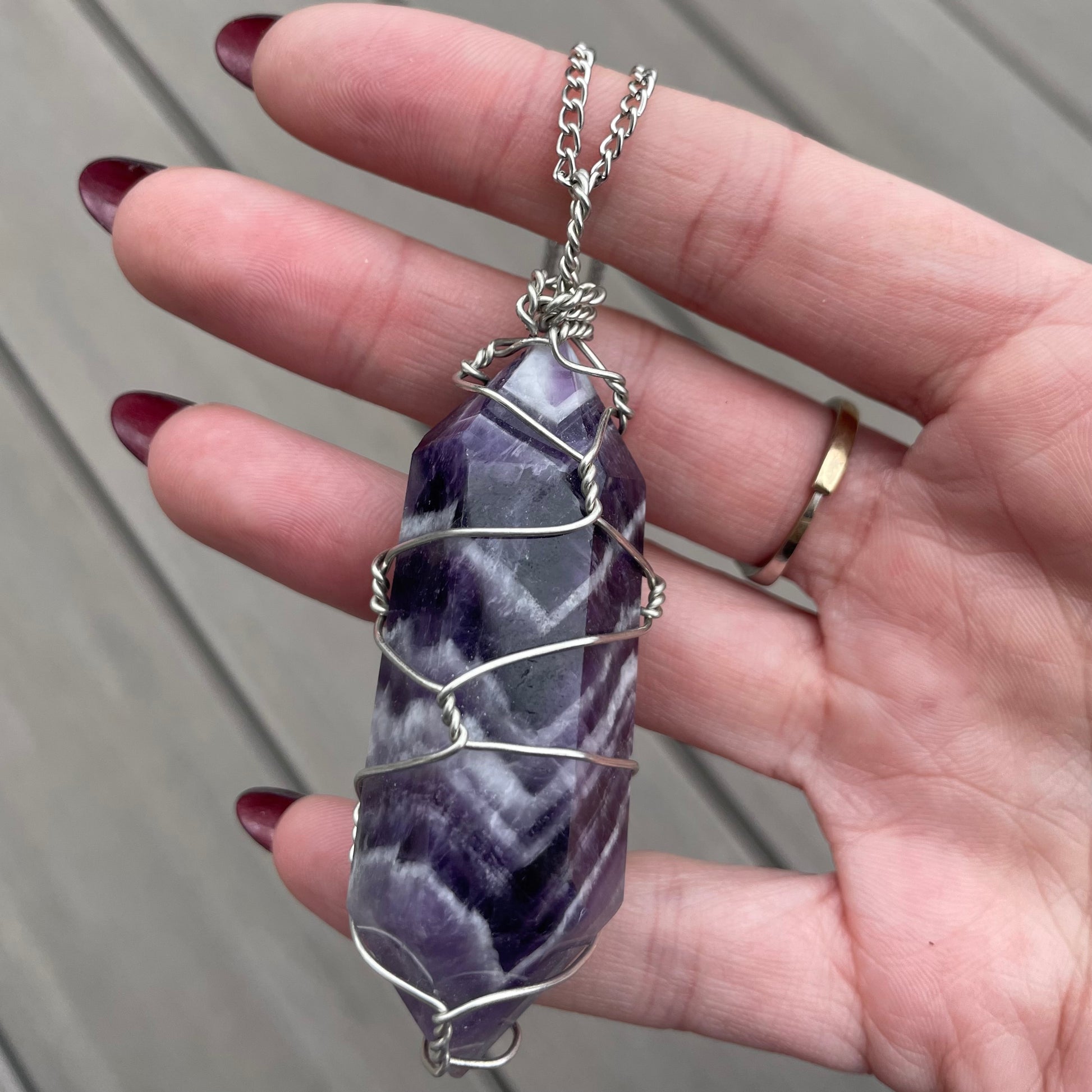 Handmade wire-wrapped crystal double-terminated necklaces! Chain length is 20 inches