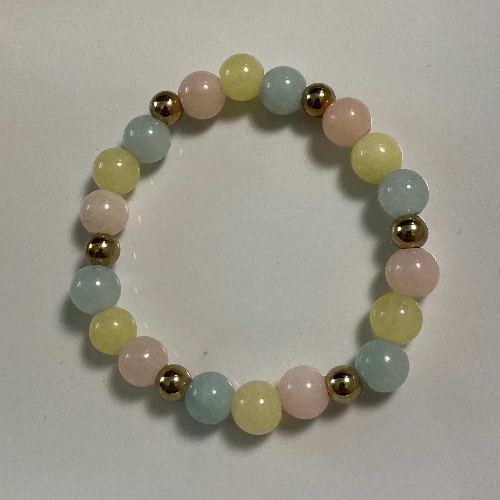 Handmade crystal bracelet! Made with Morganite stone beads, metal beads, and stretch cord!