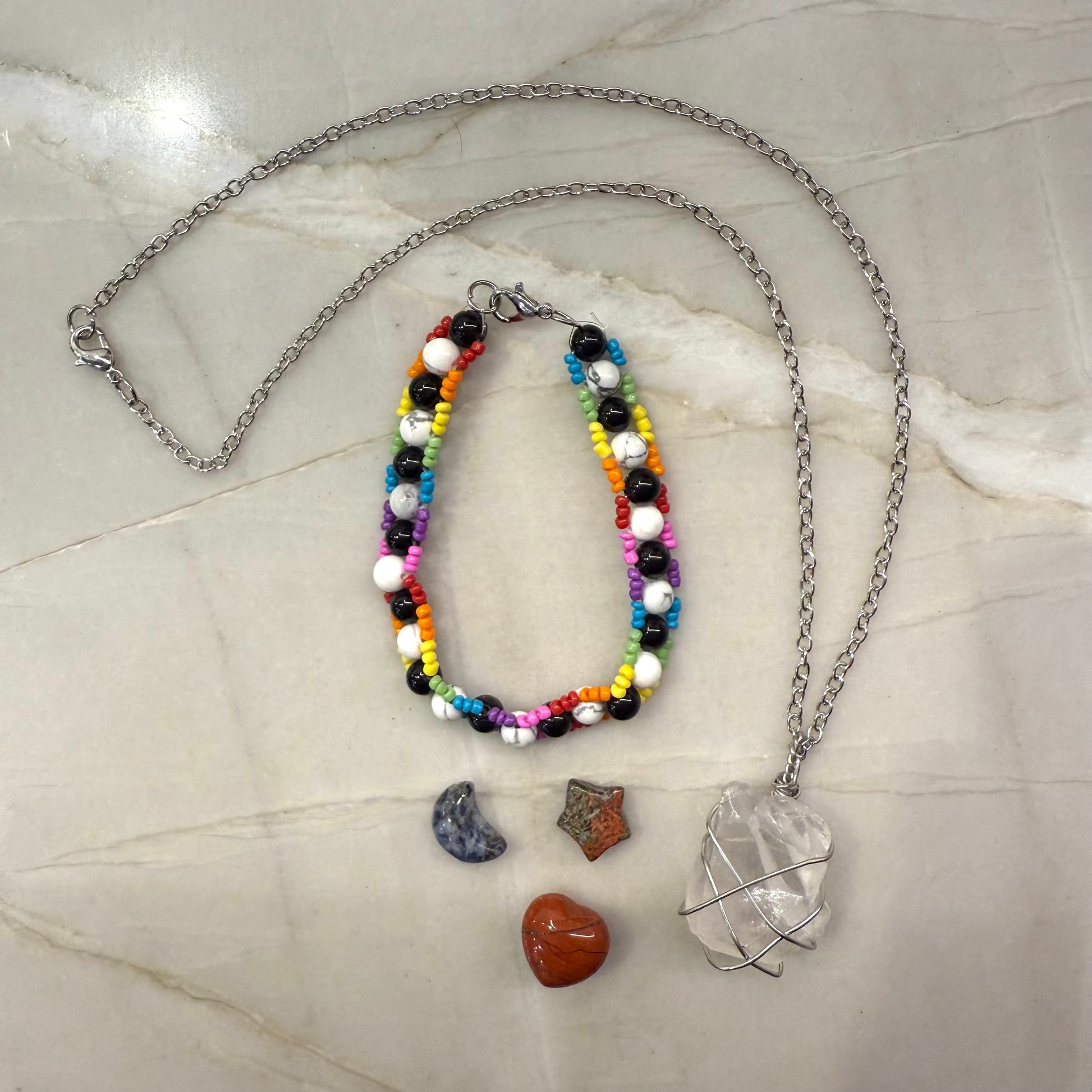 • Obsidian & Howlite Rainbow Ladder Bracelet